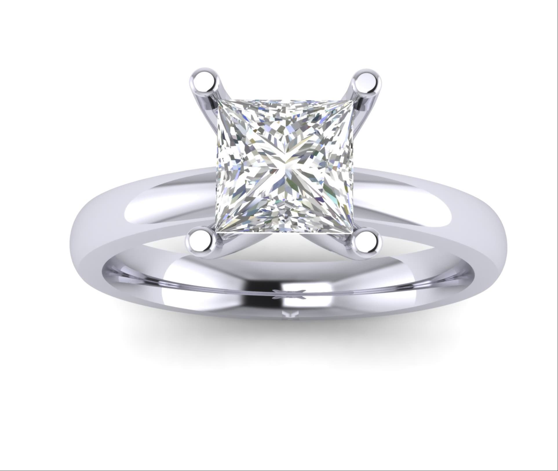טבעת יהלומים קלאסית בעיצוב עדין מזהב לבן משובצת ביהלום מרובע במשקל של 25 נקודות (0.25 קראט).