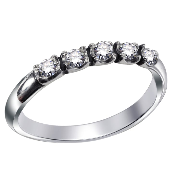 טבעת אירוסין קלאסית עשויה מזהב לבן ובעלת מראה עדין. משובצת ב5 יהלומים במשקל כולל של 40 נקודות (0.40 קראט).
