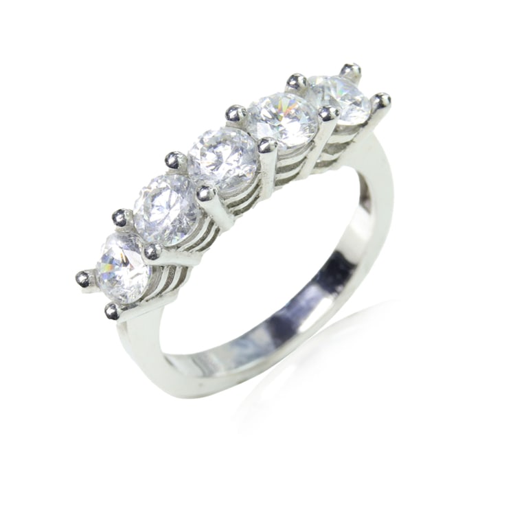 טבעת יהלומים מרהיבה מזהב לבן משובצת בחמישה יהלומים במשקל כולל של 60 נקודות (0.60 קראט).