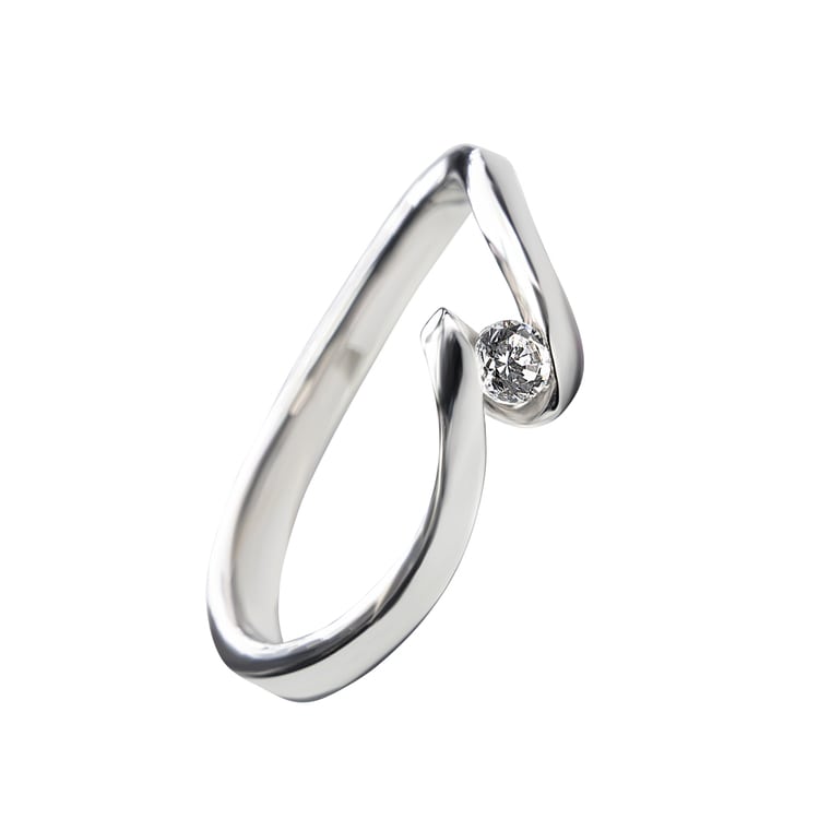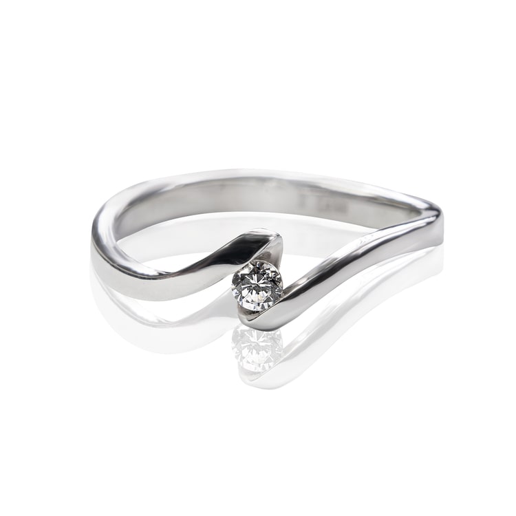 טבעת אירוסין עדינה ומיוחדת מזהב לבן, משובצת ביהלום אחד במשקל כולל של 20 נקודות (0.20 קראט)