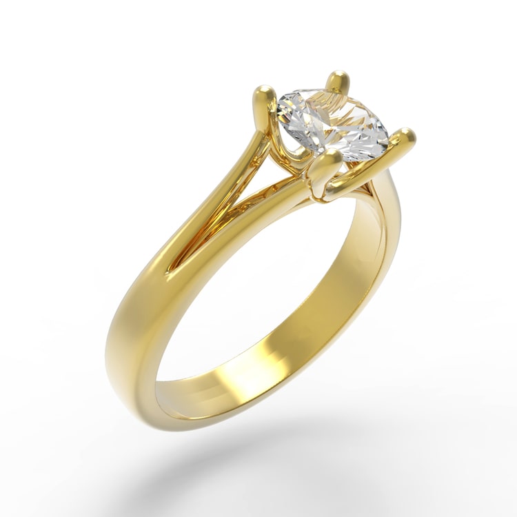 טבעת יהלום עדינה, במראה קלאסי, מזהב צהוב, משובצת ביהלום אחד במשקל כולל של 35 נקודות (0.35 קראט).