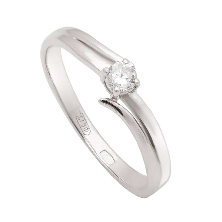 טבעת אירוסין בעיצוב עדין, בעלת מראה קלאסי מזהב לבן, משובצת ביהלום אחד במשקל כולל של 15 נקודות (0.15 קראט)