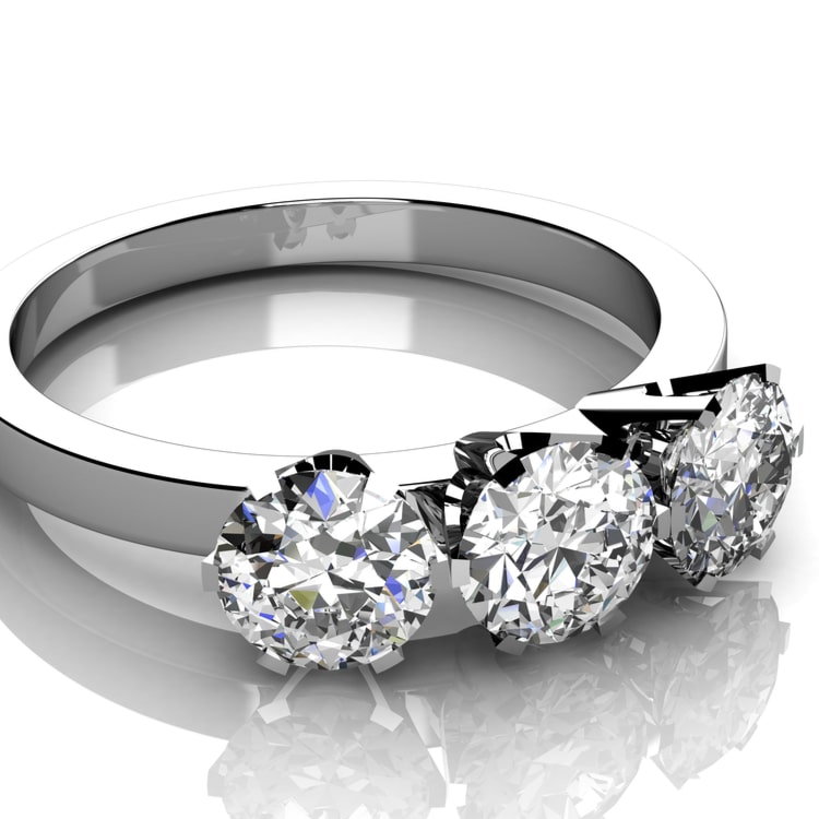 טבעת יהלום יוקרתית עם שלושה יהלומים גדולים במשקל כולל קראט 1, עשויה מזהב לבן