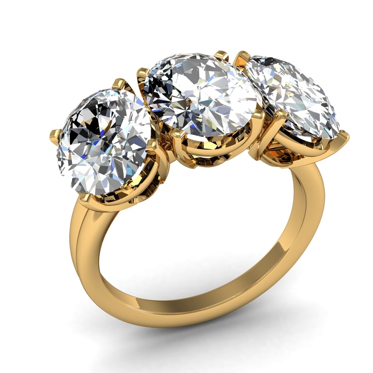 טבעת יהלום מיוחדת, מזהב צהוב, משובצת בשלושה יהלומים במשקל כולל של 60 נקודות (0.60 קראט).