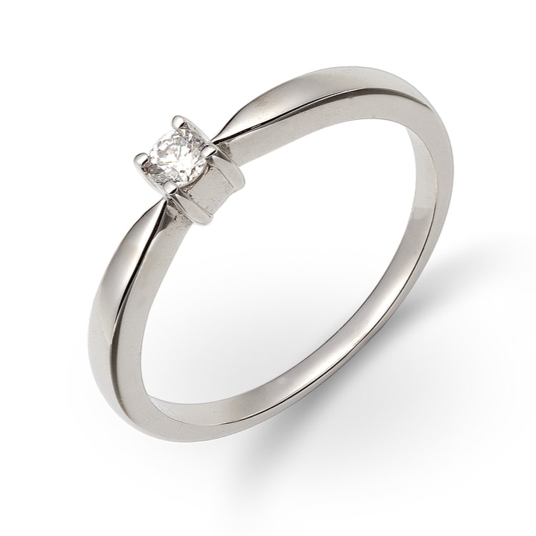 טבעת אירוסין בעיצוב עדין, בעלת מראה מיוחד מזהב לבן, משובצת ביהלום אחד במשקל כולל של 20 נקודות (0.20 קראט)