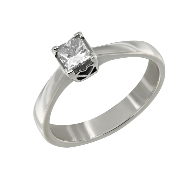 טבעת אירוסין מרובעת בעיצוב עדין, בעלת מראה קלאסי מזהב לבן, משובצת ביהלום אחד במשקל כולל של 25 נקודות (0.25 קראט)